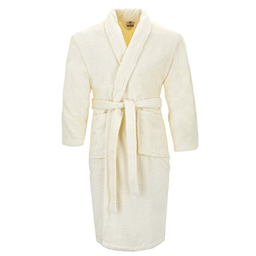 Burrito Blanco Albornoz de Ducha Liso para Hombre y Mujer con Cuello de Esmoquin Liso Talla XL, Color Crudo