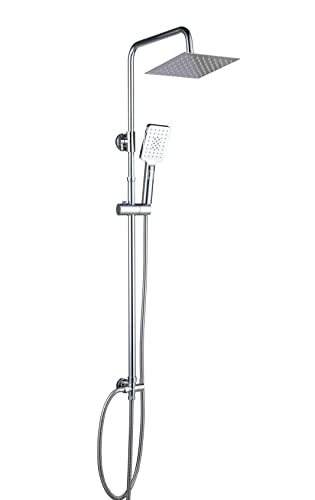 SupKonXi Alcachofa de Ducha, Alcachofa Lluvia Cuadrada de 304 Acero Inoxidable, Alcachofas Fijas Para Ducha de 10 Pugladas (25 cm) , Conexión Estándar G1/2'', Efecto Espejo Pulido
