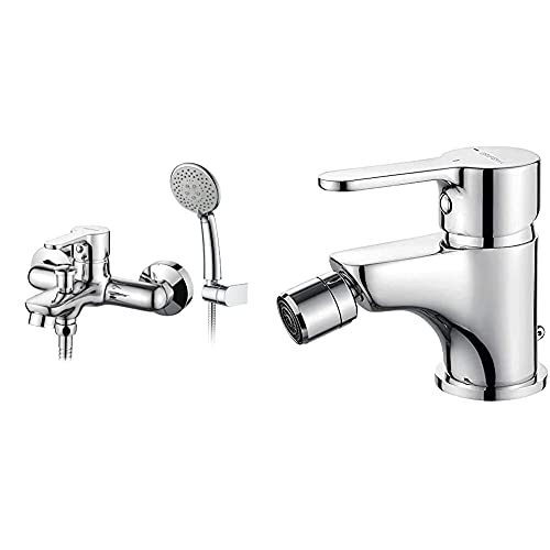 GRIFEMA Porto Grifo para bañera y ducha, Con alcachofa, manguera y soporte, color Cromo [Exclusivo en Amazon] + Grifo monomando para bidé, color Cromo [Exclusivo en Amazon]