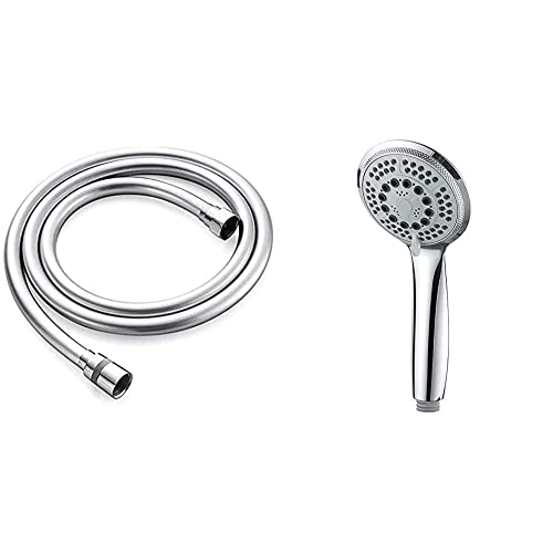 GRIFEMA G851-20 Manguera Ducha, 2.0 m, Flexo de Acero, Plata, 2.0M + Alcachofa de ducha, ducha mano Grande, 5 chorros, 100 mm, Cromo [Exclusivo en Amazon]