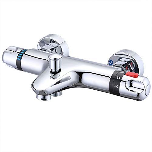 kisimixer Grifo Termostatico Ducha,Con BotóN de Seguridad de 38 °Grifos de Ducha y BañEras,Grifo Termostatico BañEra Hecho de LatóN,Cromo(Para TColgar en la pared y BañEras)