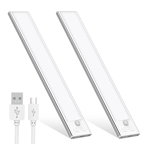 AXNEB Luz LED Armario [2 Paquete - 60LED Súper Brillante] Luz Nocturna Magnética con Sensor Movimiento, 3 Modos Lámpara Nocturna USB Recargable para Armario, Cocina, Escaleras, Garaje
