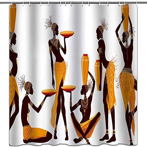 hipaopao Cortinas de ducha africanas para mujer afro con tema de tela de tela de tela para la ducha, juego de cortinas de baño con ganchos impermeables lavables 72 x 72 pulgadas, amarillo marrón