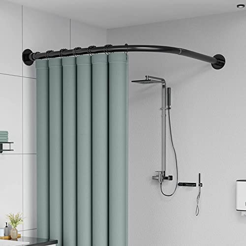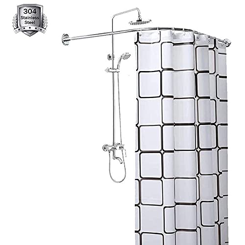 Hershii Barra de cortina de ducha curvada en forma de L, cortinas de baño de esquina para colgar postes decorativos para bañera extensible de metal, barra de riel de ducha, montado en la pared o con