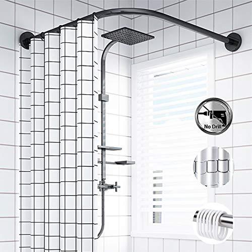Shower curtain rod Barra de Cortina de Ducha Sin Perforación Ajustable en Forma de L Riel de Cortina de Ducha Curvo de Acero Inoxidable con Cortina Impermeable y Gancho