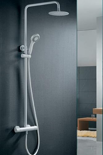 IMEX - Columna Conjunto de ducha con grifo termostático de diseño moderno, Barra de ducha extencible, Griferia de baño - SERIE LONDRES Blanco Mate - BTL011/BL