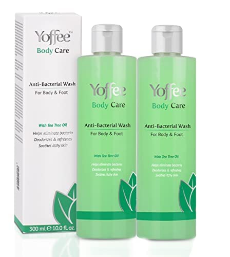 Yoffee Anti-Bacterial Wash - Gel de Ducha Desinfectante - Jabon Antibacteriano con Aceite de Árbol del Té y Coco -Previene, Elimina y Evita Bacterias-Alivia Picores, Irritaciones e Inflamaciones/900ml