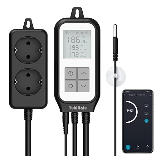 YukiHalu WiFi Termostato Digital con Sonda, App Control Remoto, Alexa/Google Assist, Controlador de Temperatura de 2 Salidas con Calefacción y Refrigeración, para Acuarios Reptiles, Cerveza Casera