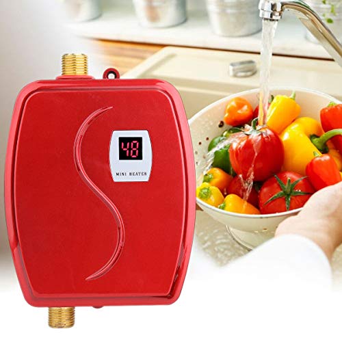 Mini calentador de agua instantáneo, calentador de agua eléctrico sin tanque, baño, cocina, lavado, enchufe de la UE 220 V 3000 W(rojo)