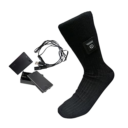 Calcetines de calefacción eléctrica para Exteriores Calcetines de calefacción de Invierno de algodón de Doble Capa Termostato de velocidades Calentamiento en la Parte Posterior del (Black, One Size)