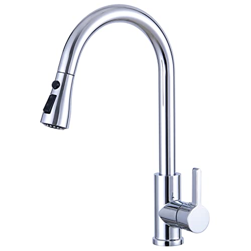 Grifo de Cocina, UCMDA Grifo Cocina extraible con Caño giratorio de 3 Modos de Rociado Rociador desplegable, Manija única de Arco Alto Extraiga, Acero Inoxidable Grifo de Cocina sin Plomo (plata)