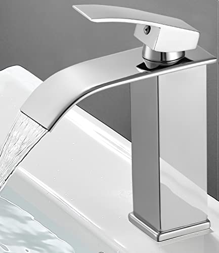 FAOKZE Grifo de lavabo,Grifo Lavabo Cascada Moderno,Grifo de lavabo con bonito diseño,Grifo de baño para agua fría y caliente,Cromado, Válvula De Cerámica,Ajustable de Caliente y Frío