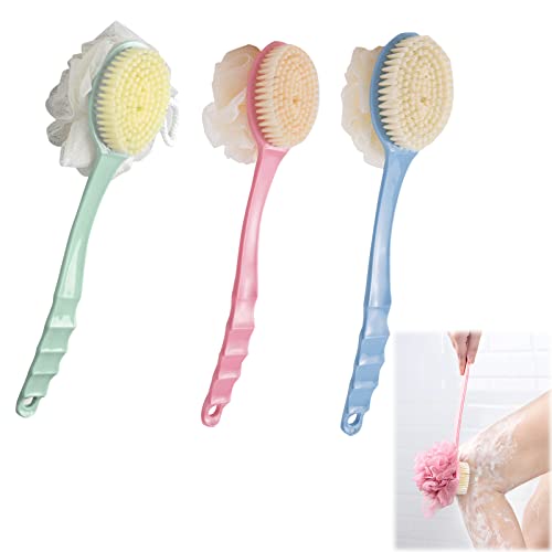 Cepillo de Ducha de Mango Largo 3 Piezas con 3 Ganchos Adhesivos Cepillo de Baño Espalda Cuerpo Cepillo para Mujeres Los Hombres Exfolian