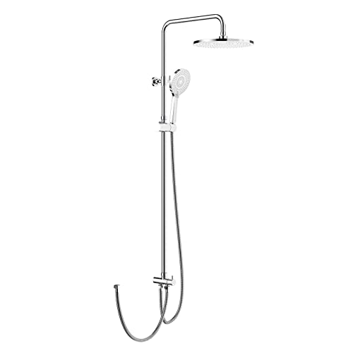 Rainsworth Columna Ducha sin Grifo, Ducha de lluvia redonda de 25cm, Alcachofa de Ducha, Conjunto de Ducha con Divertidor, Cromo