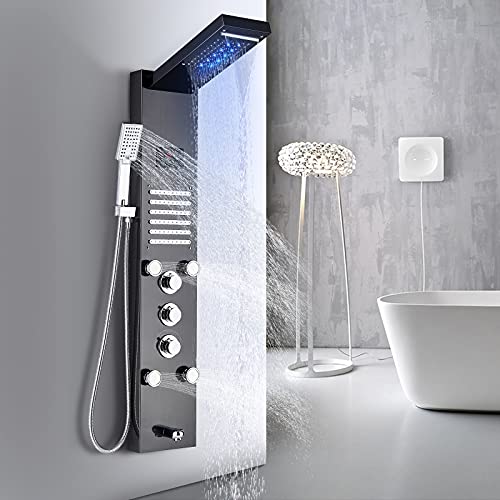 TVTIUO Panel de Ducha Hidromasaje en Acero Inoxidable Con LED Alcachofas 5 Salida de Agua Multifunción Sistema de Ducha Montaje en Pared