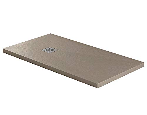 Essence - Plato de Ducha de 80 x 170 cm, Piedra de mármol de Resina - Jade - Efecto Roca - Grosor 3 cm - Rejilla cromada de Acero Inoxidable - Color Crema