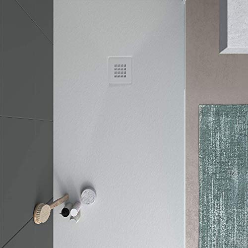 PLATO DUCHA RESINA CARGA MINERAL EFECTO PIZARRA 80X80 BLANCO RAL 9003