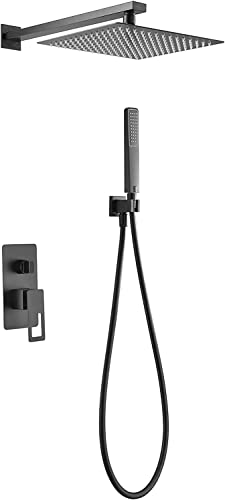 Rainsworth Sistema de Ducha Empotrado, Conjunto Ducha con Grifo Ducha Empotrado, Set Ducha Negro con 30x30cm Alcachofa de Ducha