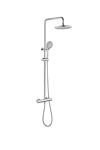 Homelody Sistema de ducha con termostato, juego de ducha cromado con efecto de lluvia, incluye barra de ducha de mano ajustable