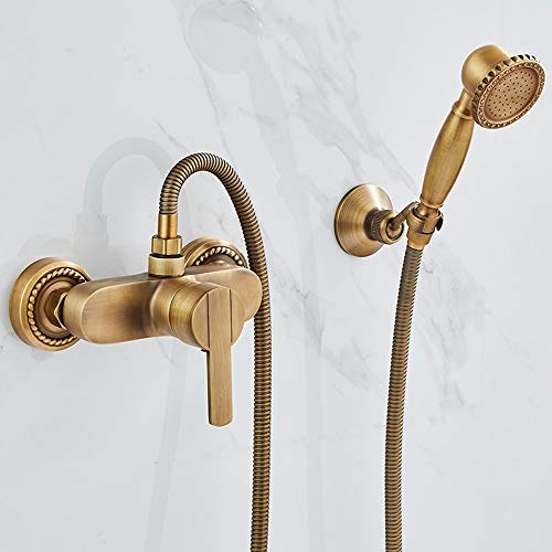 AXWT Sistema de baño ducha, baño montado en la pared de la ducha Conjunto grifo de latón antiguo grifo mezclador de la ducha W/ducha de mano, estilo europeo de bañera fría del grifo de calor