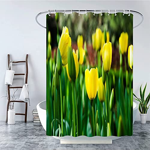 3D Cortina de Ducha Tulipán Cortina Ducha Antimoho Impermeable Lavable Cortina Baño Tulipán Cortinas de Ducha 240 x 200 cm Cortinas de Baño para Baños Duchas y Bañeras, 12 Ganchos