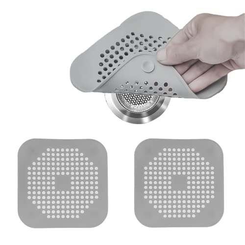 Flintronic 2PCS Coladores de Drenaje de Silicona, Cubierta de Desagüe de Ducha, Tapón de Filtro Protector de Colator de Fregadero Plegable con Ventosa Fuerte para Bañera, Baño, Cocina-Gris