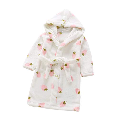 Insun Niños Albornoz Ducha Bata de Baño con Capucha Pijamas Camisón Dibujos Animados Ropa de Dormir Blanco Fresa Tag 130 Altura 120-125cm