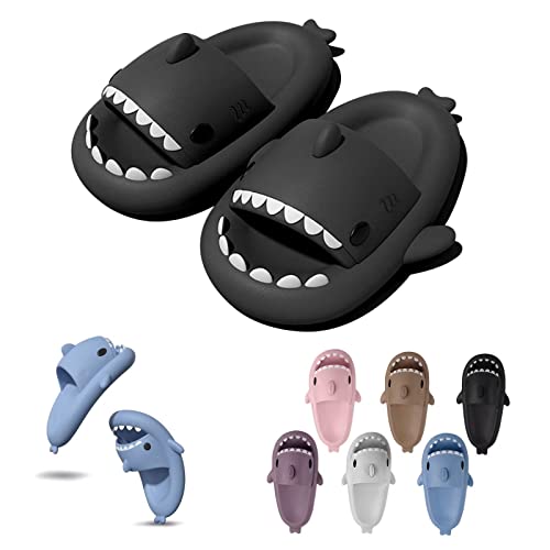 Mujer Hombre Tiburón Zapatillas Casa y Pantuflas de Ducha Sandalias de Baño Playa Verano Pantuflas Antideslizante de Shark Slides Slippers Piscina Casuales Chanclas, Unisex Negro 37-38 EU