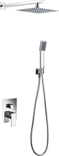 VALAZ Ducha empotrada cromada a pared monomando cuadrado con rociador de acero inoxidable 25cm