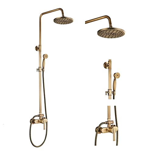 fyheast Columna de ducha antigua, grifo de ducha ajustable en altura con alcachofa de ducha de alta presión y alcachofa de ducha lluvia de 8 pulgadas, conjunto de ducha con mango único