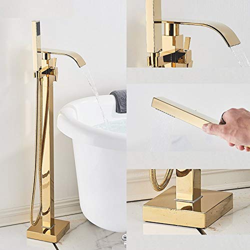 PLUIEX Grifo de bañera Grifo de bañera de Cascada de Oro Grifo de Suelo Dorado de una manija Mezclador de Agua fría Caliente Grifo Mezclador de Ducha de baño, Dorado, Tipo A