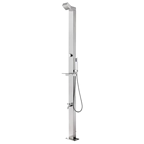 KOIECETA Ducha de jardín, columna de ducha para piscina, ducha exterior, acero inoxidable, cuadrada