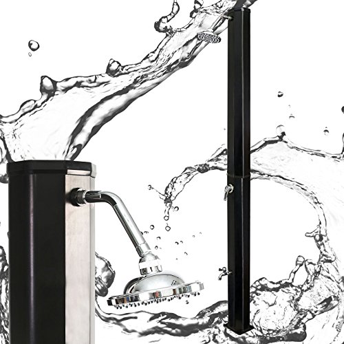 Starmatrix GRU Ducha solar de exterior con base de PVC y tubo superior de acero inoxidable, Negro