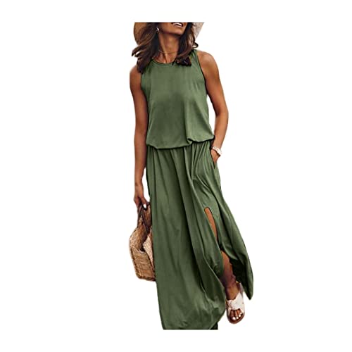Vestido sin Mangas con Cuello Redondo para Mujer de Amazon de Verano Vestido Largo de Color sólido Multicolor con Abertura