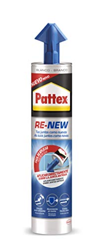 Pattex RE-NEW en cartucho, silicona blanca para sanitarios, blanqueador de juntas para baños, sellador universal impermeable con triple resistencia al moho, 1 x 280 ml