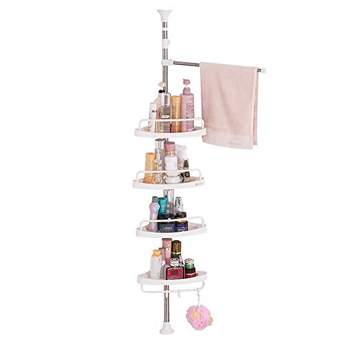 Guoyajf 4 Niveles Esquina De Baño Ducha Caddy Poste,Bastidor De Almacenamiento De Varillas De Tensión A Prueba De Óxido, Blanco