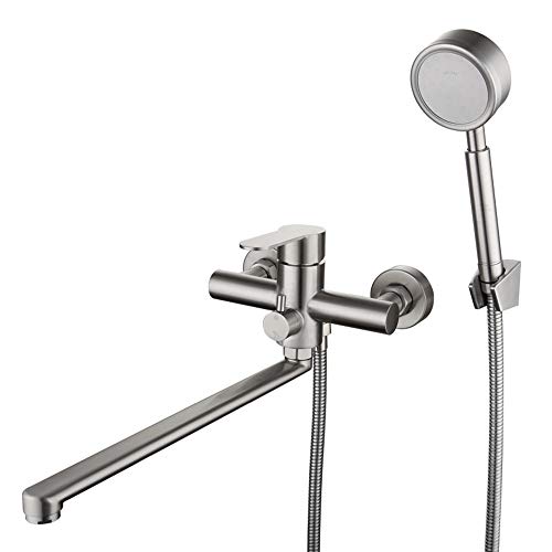 PHASAT grifo de bañera con ducha de mano de acero inoxidable juego de ducha de pared ducha de lluvia grifo de bañera de baño caño giratorio de 90 ° PTBL04E