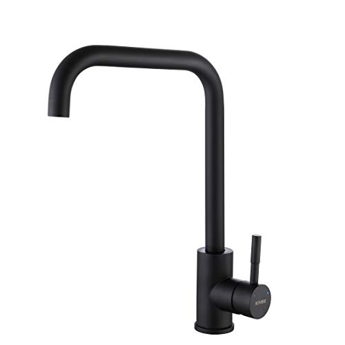 KINSE Grifo monomando de cocina de acero inoxidable, giratorio 360°, alta presión, Negro