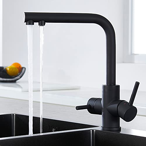 Saeuwtowy Grifo de Cocina Negro,3 Vías Osmosis agua pura,Grifo Mezclador Cocina 360°Grifo,Grifo Cocina Agua Frío y Calor disponibles
