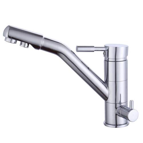 3 Vías Grifo Cocina Osmosis Grifería Cocina Filtro Agua Grifos de Fregadero 360° Giratorio Grifo, para Fregadero doble palanca Grifería de Cocina Acero iInoxidable