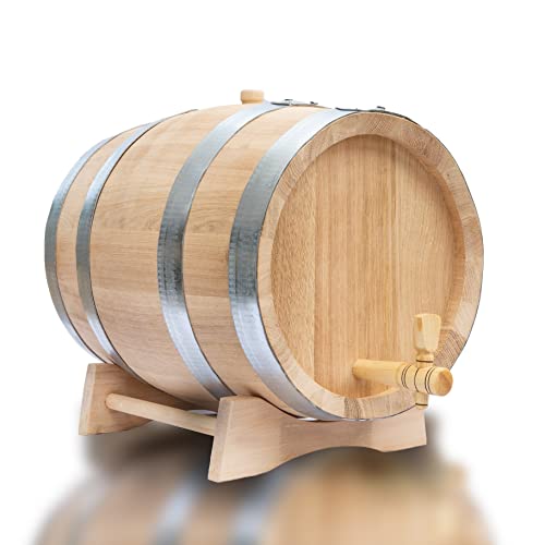 Barril de roble, barril de roble de 1.5/3/5/10 litros Barril de vino de madera de roble de roble de madera vintage para cerveza Whiskey Ron Puerto (5L)