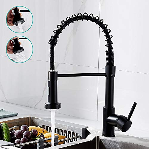 Grifo de cocina extraible con resorte monomando muelle de latóngrifos para fregadero de cocina Agua Caliente y Fría (negro)