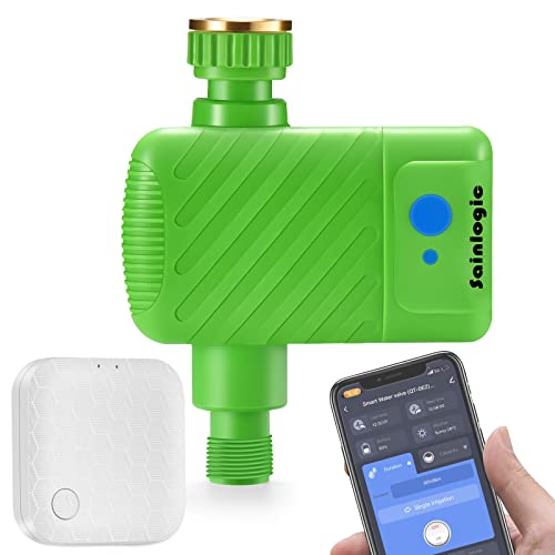 Sainlogic Programador Riego Automatico WiFi, Temporizador Riego con Smart Hub WiFi 2.4 GHz, Control Remoto App, El Acoplamiento de Grifo de Agua ½ ¾ 1 Son Aplicables, Jardín, Césped (Verde)