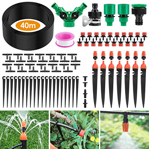 Ehomfy Sistema de Riego Jardín 40m, Kit de Riego Automático por Goteo Jardin, Kit Nebulizador Terraza para Exteriores, Terrazas, Césped, y Balcones
