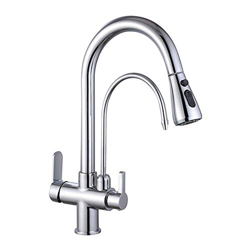 FHKBB Grifo de Cocina de 3 vías, Grifo de Filtro de Agua, con rociador, Salida Doble, ósmosis inversa multifunción, Grifo Mezclador de Cocina con Filtro para Debajo del Fregadero-Cromado