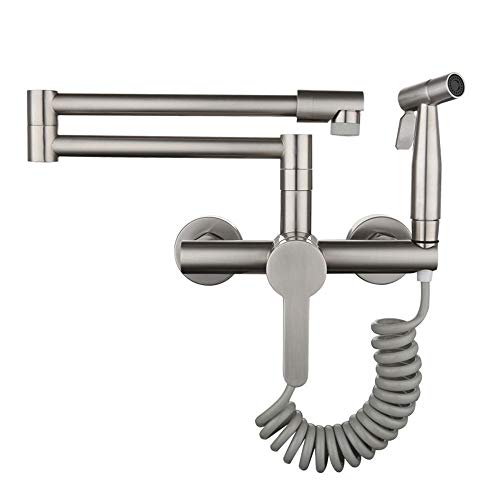 SJQKA-Grifos Abatibles Cocina,grifo Abatible Acero Inoxidable 304 2 Modos De Salida De Agua, Para Fregadero Ventana Giratorio Grifo Monomando (Níquel Cepillado)