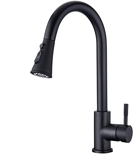 Grifos para fregadero de cocina con boquilla giratoria extraíble de rotación de 360 °, grifo monomando monobloque de una sola manija, rociador de 3 funciones, color negro