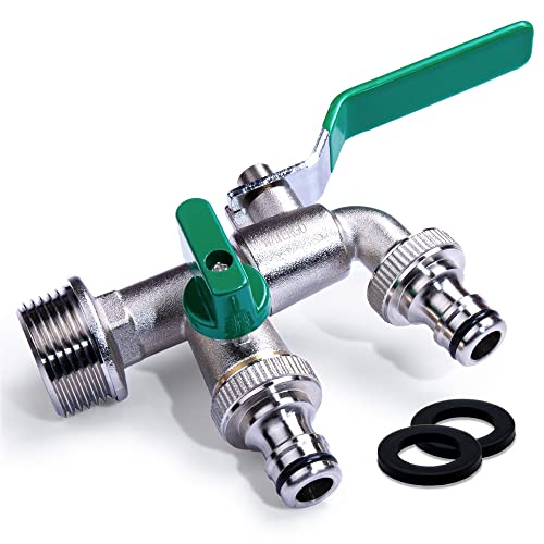Drado Grifo doble de jardin distribuidor de 2 vías 3/4"con adaptador de 2 conectores, para los riego el flujo de agua se puede regular y cerrar
