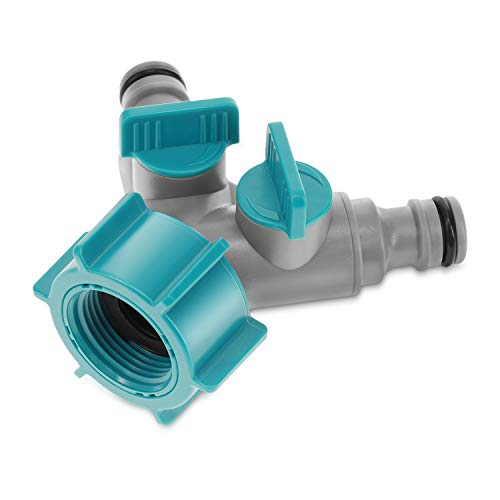 Grifo Universal Doble Bächlein para el Jardín, Azul, Incluye 2 conexiones de Manguera, Válvula de Bola con Conexión de 1/2 y 3/4 de Pulgada, Grifo de Salida Exterior