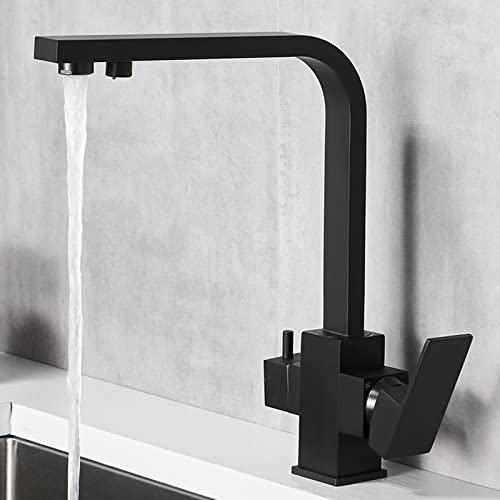 grifos cocina fregadero con Caño Flexible y Doble Mango Grifo de Cocina 3 Vías Ósmosis Agua caliente y fría Grifería de Cocina para Osmosis-negro